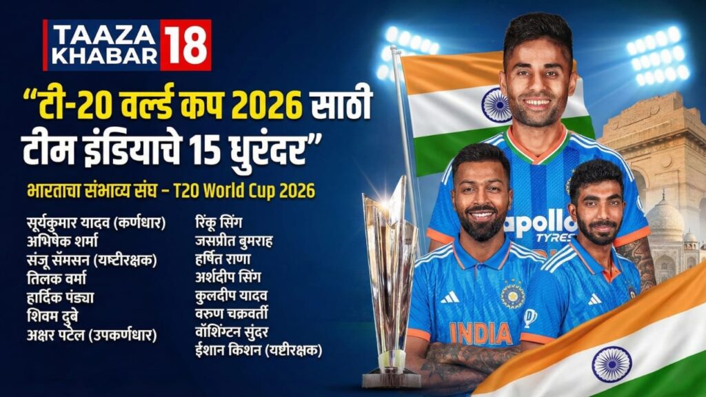 T-20 वर्ल्ड कप २०२६ साठी निवडलेला भारतीय संघ (India Squad Details).